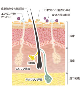 私たちの体には、「エクリン汗腺」と「アポクリン汗腺」という2種類の汗腺があります。
