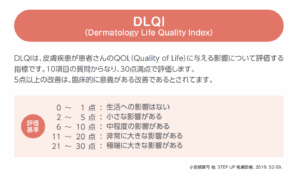 臨床的評価はEASIスコアやIGA、DLQIなどの評価尺度を用いることで客観化できます。