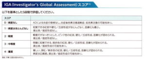 効果判定では十分な観察期間とスコアリングを行い、非薬物要因(スキンケア、感染、環境因子)も含めて総合的に評価します。