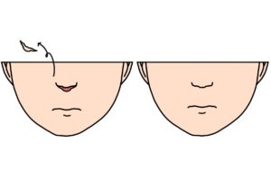 - 鼻の下から上唇までの距離が極端に短くなり、鼻と唇の間が平坦に見えることがあります。