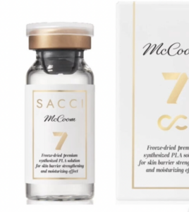 - ドラッグデリバリーシステム ポテンツァ独自の「ポンピングチップ」という機能は、薬剤を真皮層へ均一かつ正確に届けることができます。特にニキビ跡治療で優れた効果を発揮するのが、「マックーム(McCoom)」という薬剤です。これはコラーゲン生成を強力に促すPLLA(ポリ乳酸)製剤で、RFの熱刺激との相乗効果により、クレーター改善の効果を最大化します。