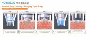 ポテンツァの最大の特徴は、マイクロニードル治療とRF(高周波)治療、そして薬剤導入という3つの作用を組み合わせた点にあります。