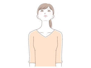 - 顔をゆっくりと真上に向け、首の前側が伸びているのを感じます。