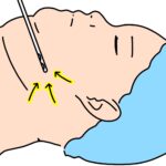 - 鏡の前で、左右のエラの部分に指をあてます。