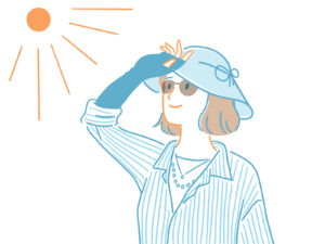 - 外出時 季節や天候にかかわらず、SPF30・PA++以上の日焼け止めを必ず塗りましょう。2〜3時間おきに塗り直すのが理想です。帽子、日傘、サングラスの併用も非常に効果的です。