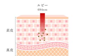 ルビーレーザーから照射される694nmという特定の波長の光は、皮膚の正常な部分にはほとんど吸収されません。その代わり、シミの原因である黒いメラニン色素にだけ、ピンポイントで吸収されるという優れた特性を持っています。