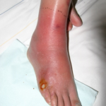 - 急な発赤、腫れ、熱感を伴い、発熱などの全身症状が出ることが多いです。