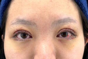 海外の研究でも、埋没法は術後の腫れや充血が軽い傾向にあることが示されています。 一方、切開法は構造を直接作り変えるため、術後の痛みや腫れが強く出やすいことが報告されています。