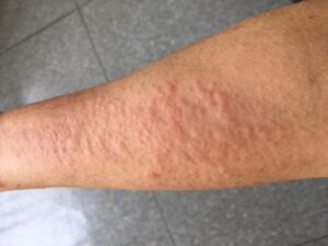 - 強い痒みを伴い、皮膚の乾燥や湿疹が全身に広がるのが特徴です。