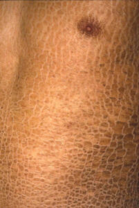 - 遺伝性の角化症で、全身の皮膚が乾燥し、魚の鱗のような状態になる病気です。