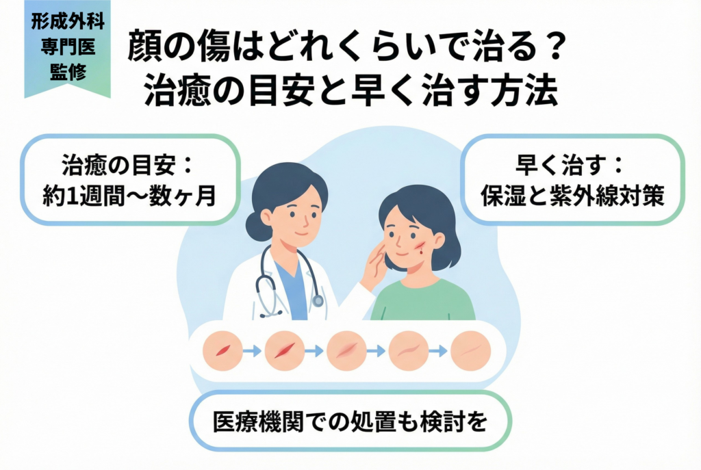 顔にできてしまった傷は、「いつになったら治るのだろう」「跡が残ってしまうのではないか」と、多くの方が不安を感じることでしょう。特に顔はデリケートな部位であり、見た目への影響から、その心配は計り知れません。