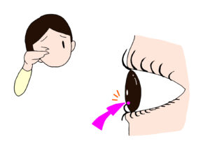 - まつげが擦れることで、角膜の最も外側の層が剥がれてしまう状態です。強い痛みを感じ、目に砂が入ったような激しい不快感を伴います。