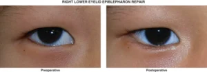- この乱視が強い場合や、それによって弱視(めがねなどで矯正しても視力が出にくい状態)が進行するリスクがある場合には、年齢が低くても手術が推奨されることがあります。エピブレファロンを持つ児童は、そうでない児童と比較して乱視の有病率と程度が高いことも報告されています。