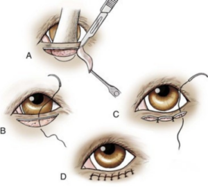 - 例えば、まぶたの裏側から切開する「経結膜切開」と、まつげの生え際あたりを切開する「睫毛下切開」では、それぞれ異なる眼瞼合併症のリスクがあります。