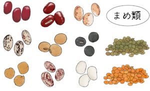 - 豆類(大豆、レンズ豆など)、イモ類(さつまいも、じゃがいも)