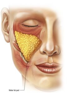 - メーラーファットは、頬骨のあたり、目のすぐ下から鼻の横にかけて存在する皮下脂肪の塊です。