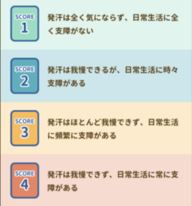- 汗の量がどの程度で、どのくらい日常生活に支障が出ているかを具体的に医師に伝えてください。