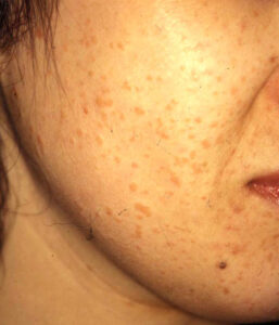 - 顔(特に額や頬)、手の甲、腕によくできます。