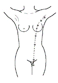 副乳ができる場所として最も多いのは脇の下です。 しかし、前述の「ミルクライン」上であれば、どこにでも発生する可能性があります。 通常は、脇の下から胸の下、お腹にかけて見られますが、非常に稀な場所にできるケースも医学的に報告されています。