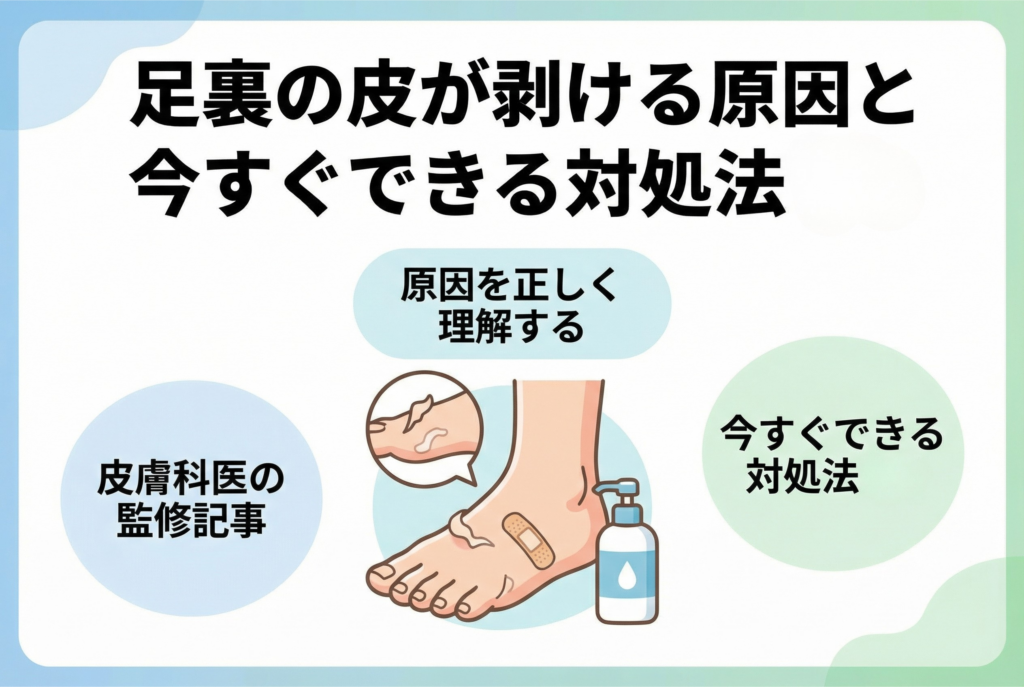 足裏の皮が剥けていると、見た目の不快感だけでなく、「もしかして病気?」「家族にうつしてしまうかも」といった不安を感じる方も多いでしょう。その原因は身近な乾燥や水虫、さらにはあまり聞き慣れない皮膚疾患まで多岐にわたります。