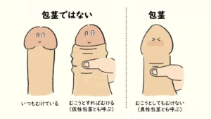 ご自身の状態を客観的に把握するために、まずはどのタイプの包茎かを確認しましょう。 包茎は、主に「真性包茎」「嵌頓包茎」「仮性包茎」の3つに分類されます。
