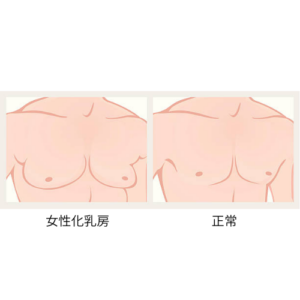 女性化乳房症とは、男性の乳房にある乳腺組織が、何らかの原因で発達してしまう状態のことです。単に脂肪がついただけの「偽性女性化乳房症」とは異なり、乳首の下に硬いしこりを触れるのが特徴です。