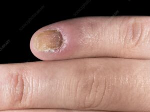 特に、次にご説明する爪の周りの炎症(爪囲炎)を伴う場合に、爪の変形は起こりやすくなります。