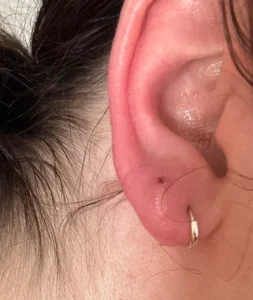 ピアスが見えない 強い腫れや、新しく作られた皮膚によって、ピアスのヘッドやキャッチが完全に隠れてしまっている状態です。
