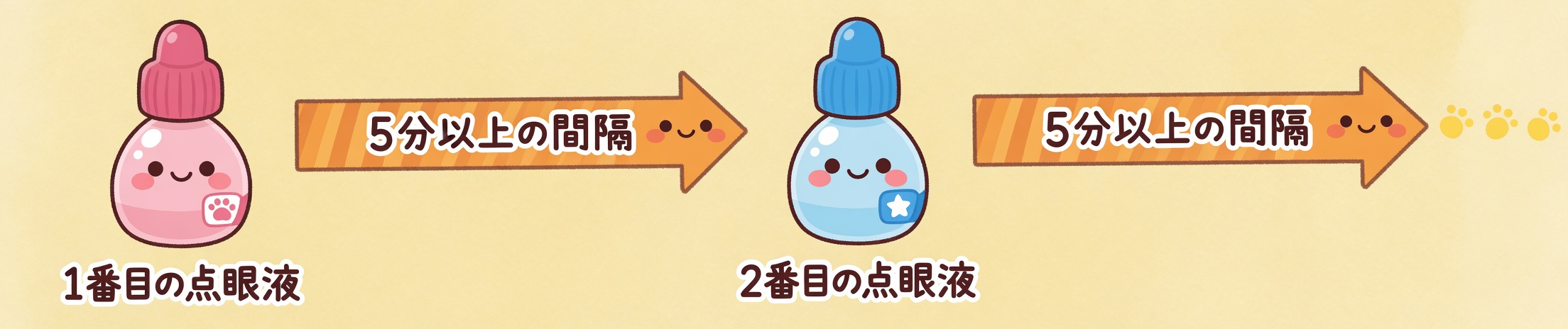 - 点眼順序と間隔の確保: 一般的に、複数の目薬を点眼する際は、水っぽい目薬から先に点眼し、油っぽいものや粘度が高い目薬を後に点眼するのが良いとされています。これは、粘度の高い薬が先に点眼されると、後に続く水っぽい薬の吸収を妨げてしまう可能性があるためです。また、それぞれの目薬の効果が薄まらないよう、少なくとも5分以上の間隔を空けて点眼してください。これにより、薬液が十分に目に留まり、浸透する時間を確保できます。