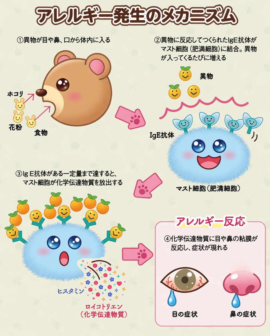 花粉が目にアレルギー反応を起こすメカニズム
