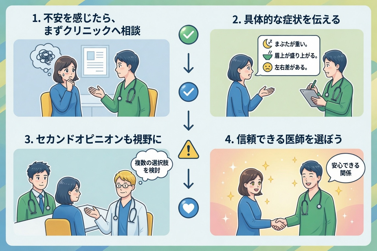 後悔しないために最も重要なのは、ご自身の状態を客観的に把握し、信頼できる専門家へ相談すること。ここでは、そのための具体的なクリニックや医師の選び方について解説します。