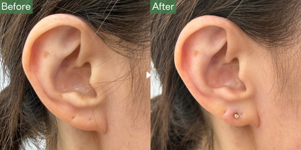 | 施術リスク | ✓疼痛(痛み) 穿孔時および穿孔後に、一時的な痛みを感じることがあります。 ✓出血 穿孔時や穿孔直後に、少量の出血を伴うことがあります。 ✓腫脹・発赤 穿孔部位に腫れや赤みが生じることがあります。 ✓感染症 細菌感染により、化膿、痛み、腫れ、熱感などの症状が出ることがあります。 ✓アレルギー反応 使用するピアス金属により、かゆみ、発疹、湿疹などのアレルギー症状が起こる場合があります。 ✓ケロイド・肥厚性瘢痕 体質によっては、穿孔部にケロイドや盛り上がった瘢痕が形成されることがあります。 |